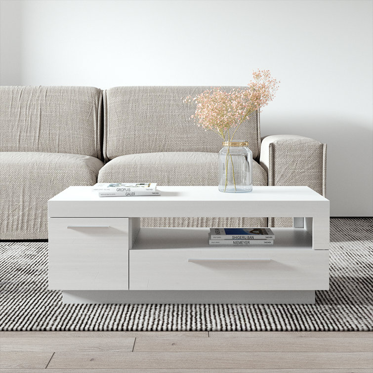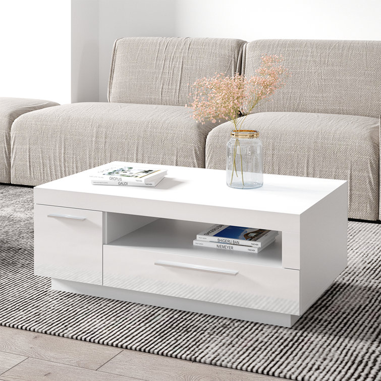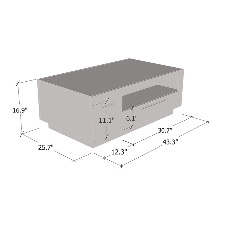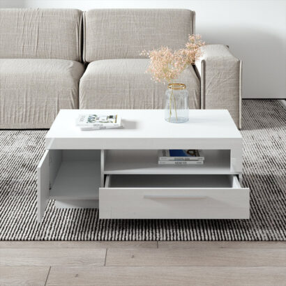 Meran 43.3″ coffee table – modern coffee table/end table/console table with high gloss fronts with a matte body. Manufactured in a modern and unique contemporary design. Dimensions: 16.9 Inches height x 43.3 inches width x 25.7 inches depth