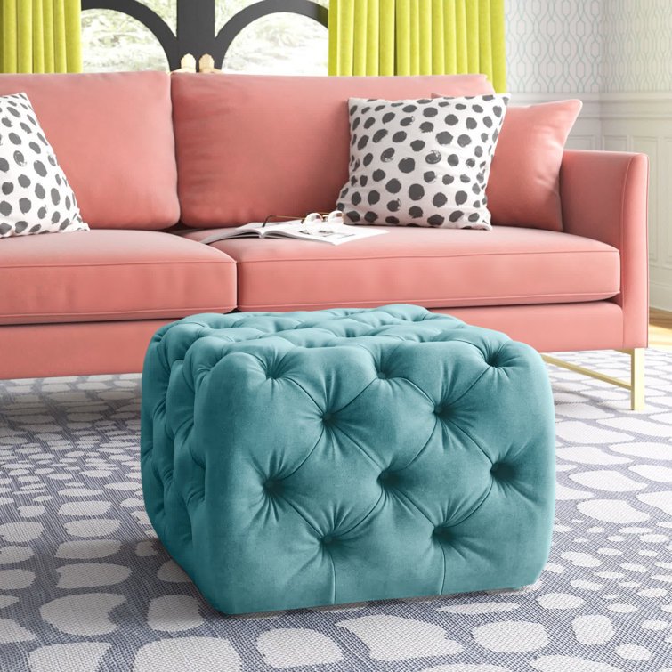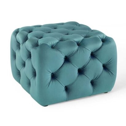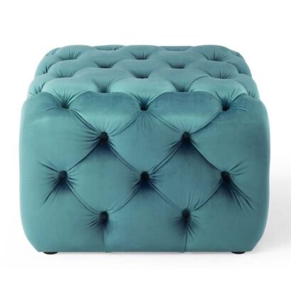This ottoman has dramatic deep tufting to make it a vintage glam addition to your living room. It features a square silhouette that sits on minimal feet. This ottoman is wrapped in velvet for a luxe look and feels we love. Plus, its foam filling provides just the right amount of support as you sit for game night or under your feet as you kick back. All-over tufting gives this ottoman a tactile element. It measures 16.5″ tall and 24″ wide, so you can use it as a coffee table too.