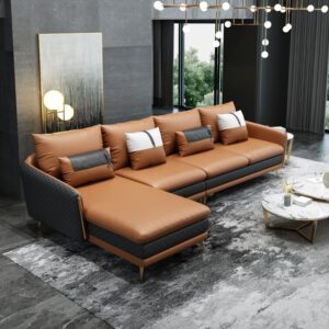 Solid Wood Efird Leatherette Chaise Sectional Sofa By Sofa Crafter