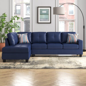 Solid Wood Orme Blue Leatherette Chaise Sectional By Sofa Crafter