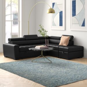 Solid Wood Oropeza Black Leatherette Chaise Sectional By Sofa Crafter