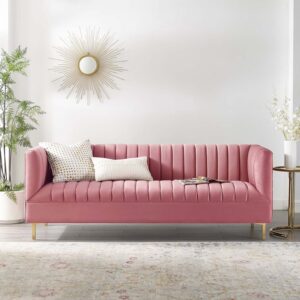 Solid Wood Rosalia 59.5” Upholstered Sofa By Sofa Crafter (Rose)